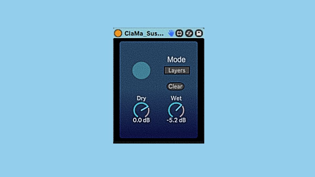 - Layer: by holding down the circular button, the sound passes through the sustain circuit and remains sustained even when the button is released. Pressing the button allows the sound to feed the sustain circuit, by releasing it will no longer receive any sound, but will keep sustained what it received previously. By pressing it several times it is possible to sustain different notes/sounds and layer them. The clear button softly decays each sound.